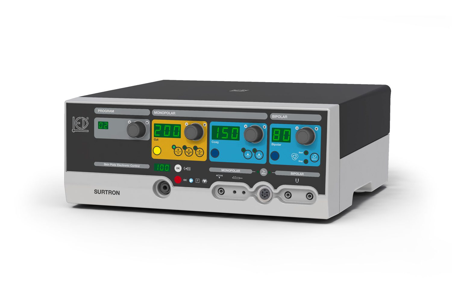 SURTRON® 200 дозволяє виконувати високопрофесійні операції завдяки інтуїтивному та безпечному дизайну. З'єднання нейтрального електроду постійно контролюється. Надійність з'єднання контролюється за допомогою розділеного нейтрального електроду. Можливість використання функцій та регулювання вихідної енергії за допомогою монополярної рукоятки дозволяє проводити хірургічні операції, не відволікаючи хірурга.