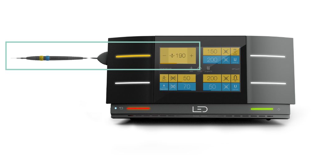 Первинне налаштування SURTRON TOUCH HP та регулювання характеристик протягом проведення операції легко встановлюється за допомогою великого сенсорного екрану.